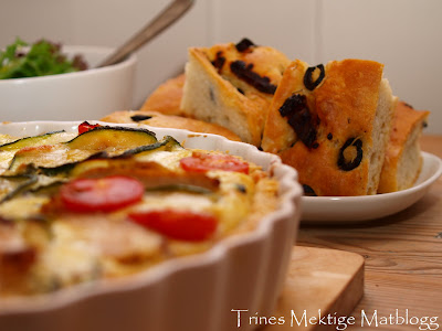 La paien hvile noen minutter før den serveres, eventuelt kan du servere den kald. Det er minst like godt! Og er du så heldig å få noe til overs, smaker det kjempegodt i lunsjboksen dagen etter! Serveres med en grønn salat og godt brød, for eksempel foccacia.