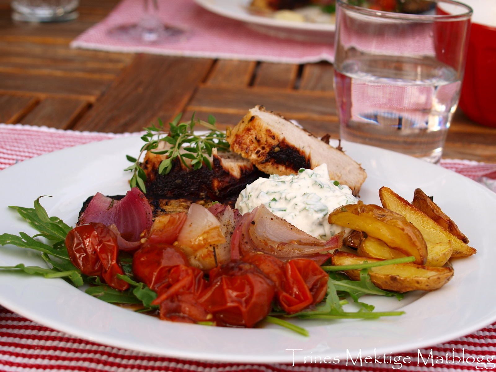 Sommer er grilltid og tiden for godt grilltilbehør. Her kommer forslag til enkelt tilbehør, som kan tilberedes på grillen, samt nydelige timianpoteter som passer seg selv i stekovnen. Jeg serverte dette tilbehøret til marinert, grillet svinefilet forleden, og Mathias på 2 år ble først stille, og så sa han: ”Godt i munnen!”. Bedre tilbakemelding kan en vel knapt få, eller hva? Her kommer forslag til ulike grilltilbehør: