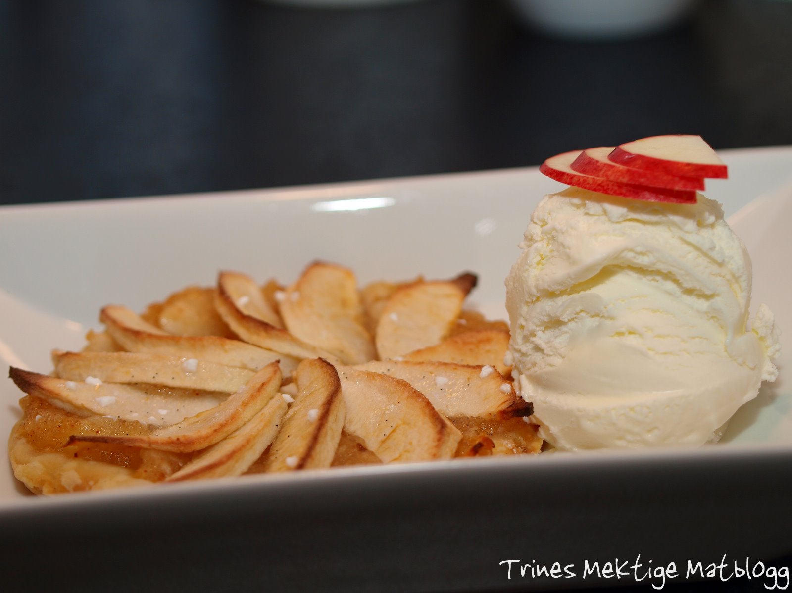 Stekes ved 200 grader i ca 15-20 minutter, eller til butterdeigen er gjennomstekt og eplene er møre og såvidt har fått litt farge.