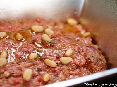 Ha alle ingrediensene i en stor bolle og bland de godt sammen. Bruk fingrene, de er ditt beste redskap i en sådan stund.