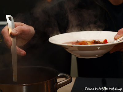 Det er hektiske tider, med krevende oppgaver på jobb med stramme tidsfrister og en hektisk hverdag for øvrig. Ettermiddagene blir korte og kveldene sene. Helgene er over omtrent før vi får satt oss nedpå, føles det nesten som. Men, selv om vi har det hektisk, så spiser vi alltid en ordentlig middag, og det er kanskje derfor en også orker et slikt tempo i hverdagen? Den siste tiden har jeg fått mer og mer sansen for supper. Supper er ikke hva det en gang var, det er sikkert og visst. Her kommer en variant av den tradisjonelle ungarske gulasjsuppen, slik jeg lager den. Til 3-4 porsjoner trenger du omtrent: