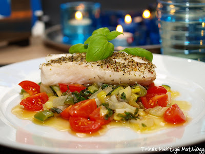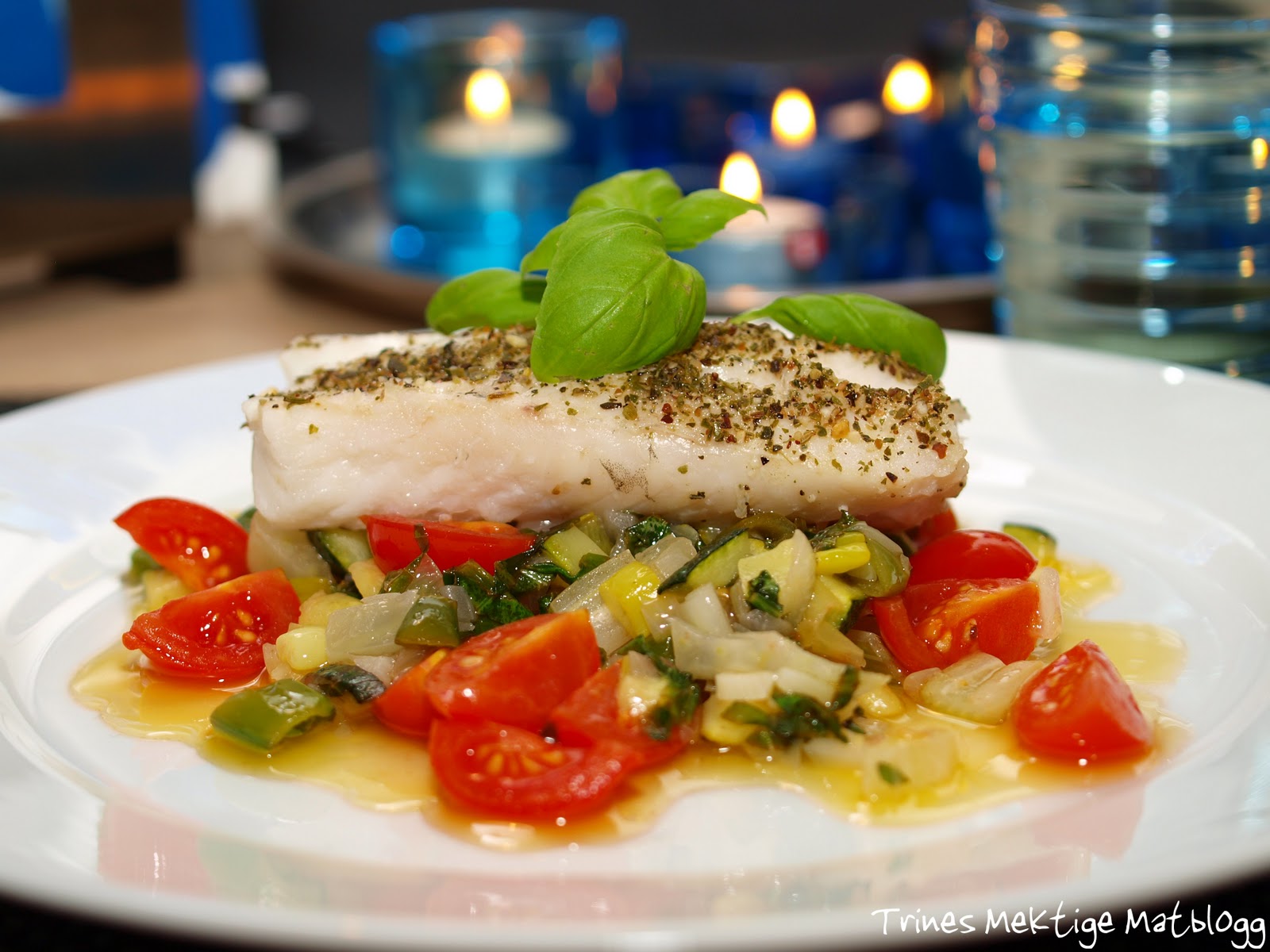 Som mitt bidrag til oppskrift hadde journalisten plukket ut dampet torskerygg med sauce vierge.