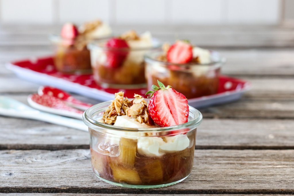 PS. Glem alt du eventuelt har hørt om at du ikke må spise rabarbra etter St. Hans. Rabarbra kan nemlig nytes gjennom hele sommeren, så lenge du bruker de nye, unge rabarbrastilkene og styrer unna de “trevlete” stilkene.