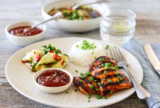 KYLLING YAKITORI MED STICKY SAUS OG AGURKSALAT