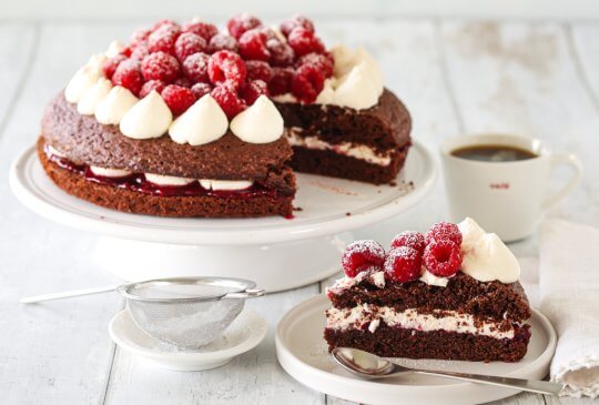 SJOKOLADEKAKE MED MASCARPONEKREM OG BRINGEBÆR