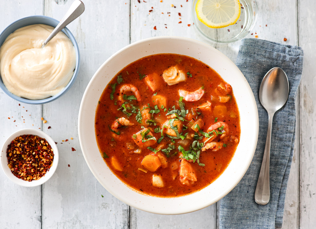 Bouillabaisse er den klassiske fiskesuppen fra Sør-Frankrike, fylt med smak av hav og aromatiske urter. Denne enkle versjonen gir deg den samme deilige stemningen – uten alt for mye arbeid – og serveres selvfølgelig med silkemyk, hjemmelaget aioli ved siden av. Perfekt når du vil imponere med noe både rustikt og smakfullt!