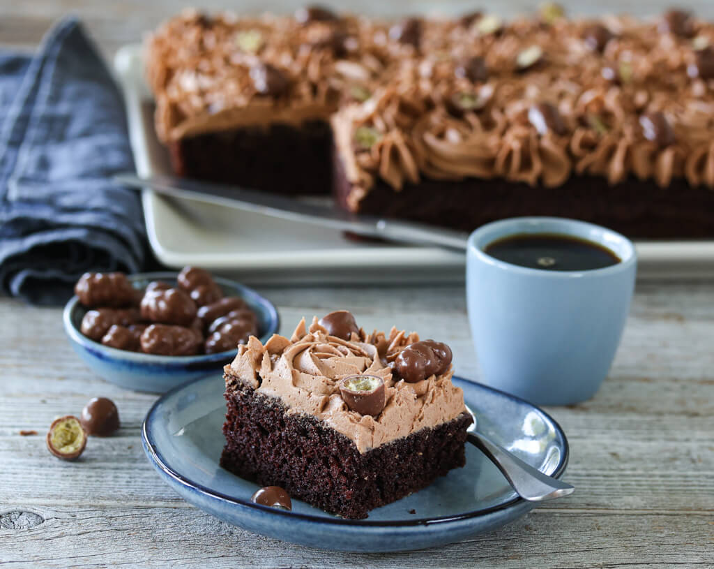 En saftig sjokoladekake med silkemyk espressokrem, dekorert med vakre roser og stjerner, og toppet med sprø sjokopops – både enkel og rask å lage. Perfekt når du vil imponere uten å bruke hele dagen på kjøkkenet. Husk å la kaken stå i romtemperatur i en times tid før servering, så kommer smaken virkelig til sin rett!