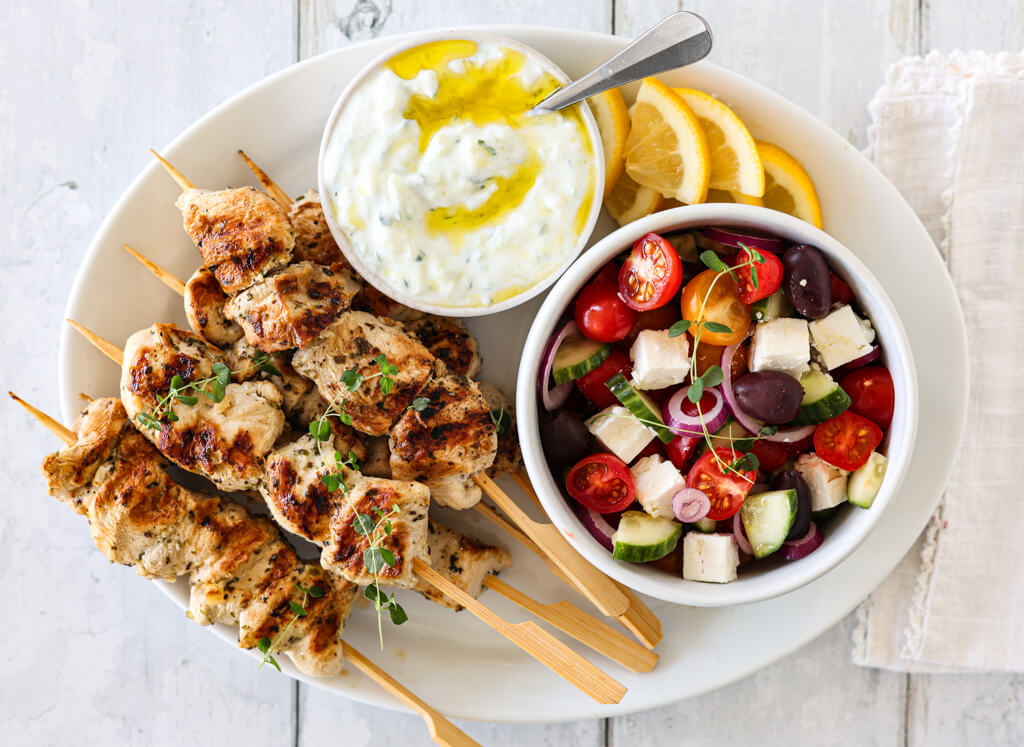 Ta en kulinarisk svipptur til Hellas med denne fristende retten: saftige, marinerte kyllingspyd servert med frisk tzatziki, pita og en klassisk gresk salat. Enkle, rene smaker og solrike ingredienser bringer middelhavsfølelsen hjem til ditt eget kjøkken. Perfekt til både hverdags og helgekos!