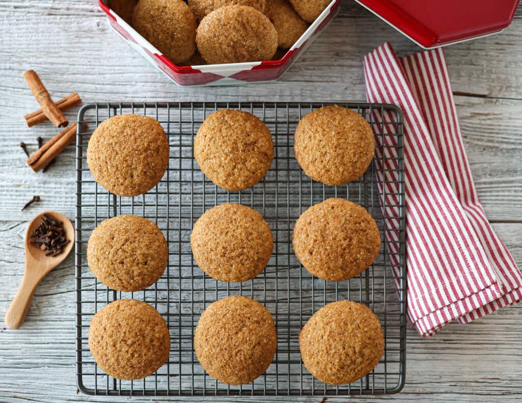 Disse myke krydderkjeksene smaker skikkelig jul – med varme krydder og en deilig kombinasjon av søt karamell og frisk appelsin. De er myke og seige i midten, lett sprø i kantene og fyller kjøkkenet med den beste juleduften. Perfekte til en kopp te, kaffe eller gløgg i førjulstiden, eller som en liten spiselig gave.
