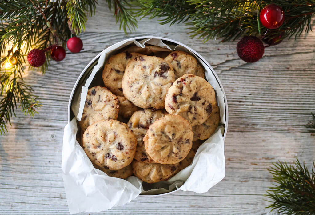 Disse julekjeksene med sjokolade og tranebær er enkle å lage og fulle av julestemning. De er både seige og sprø, fulle av sødme fra sjokoladen og et lite hint av syrlighet fra tranebærene. Perfekte å sette frem i adventstiden, gi bort som en liten førjulshilsen – eller bare nyte sammen med en varm kopp te når kvelden senker seg.