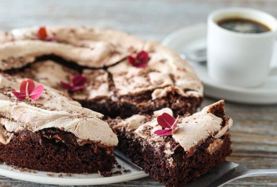MØRK SJOKOLADEKAKE MED MARENGSLOKK