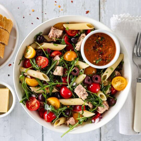 PASTASALAT MED TUNFISK, TOMAT OG PAPRIKADRESSING