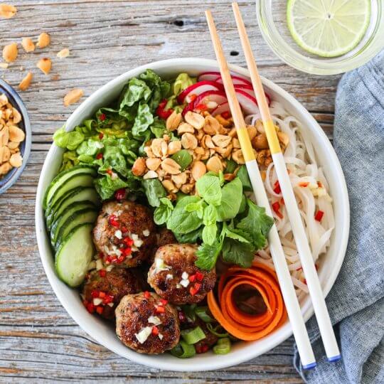 VIETNAMESISK NUDELSALAT MED SVINEKJØTTBOLLER OG NUOC CHAM