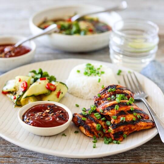 BBQ-KYLLING MED KOREANSK TOMATGLAZE OG AGURKSALAT