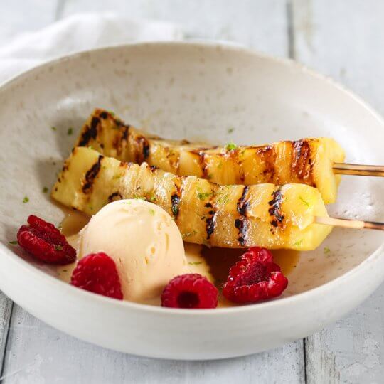 GRILLET ANANAS MED BRINGEBÆR OG VANILJEIS