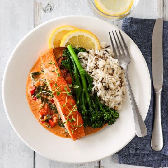 ØRRET MED KREMET PAPRIKASAUS OG BROKKOLINI