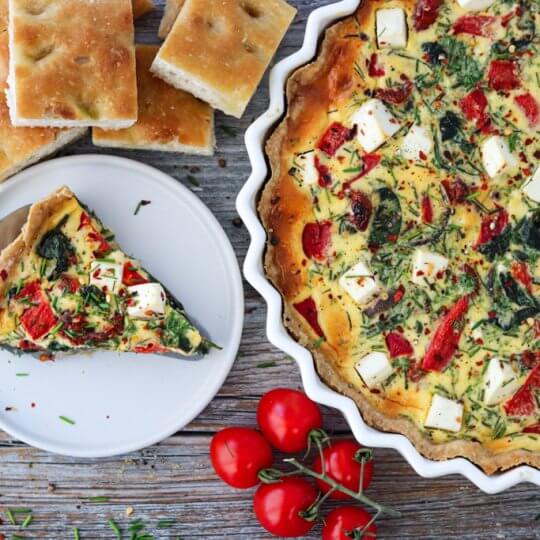 VEGETARPAI MED SPINAT, LØK, PAPRIKA OG FETA